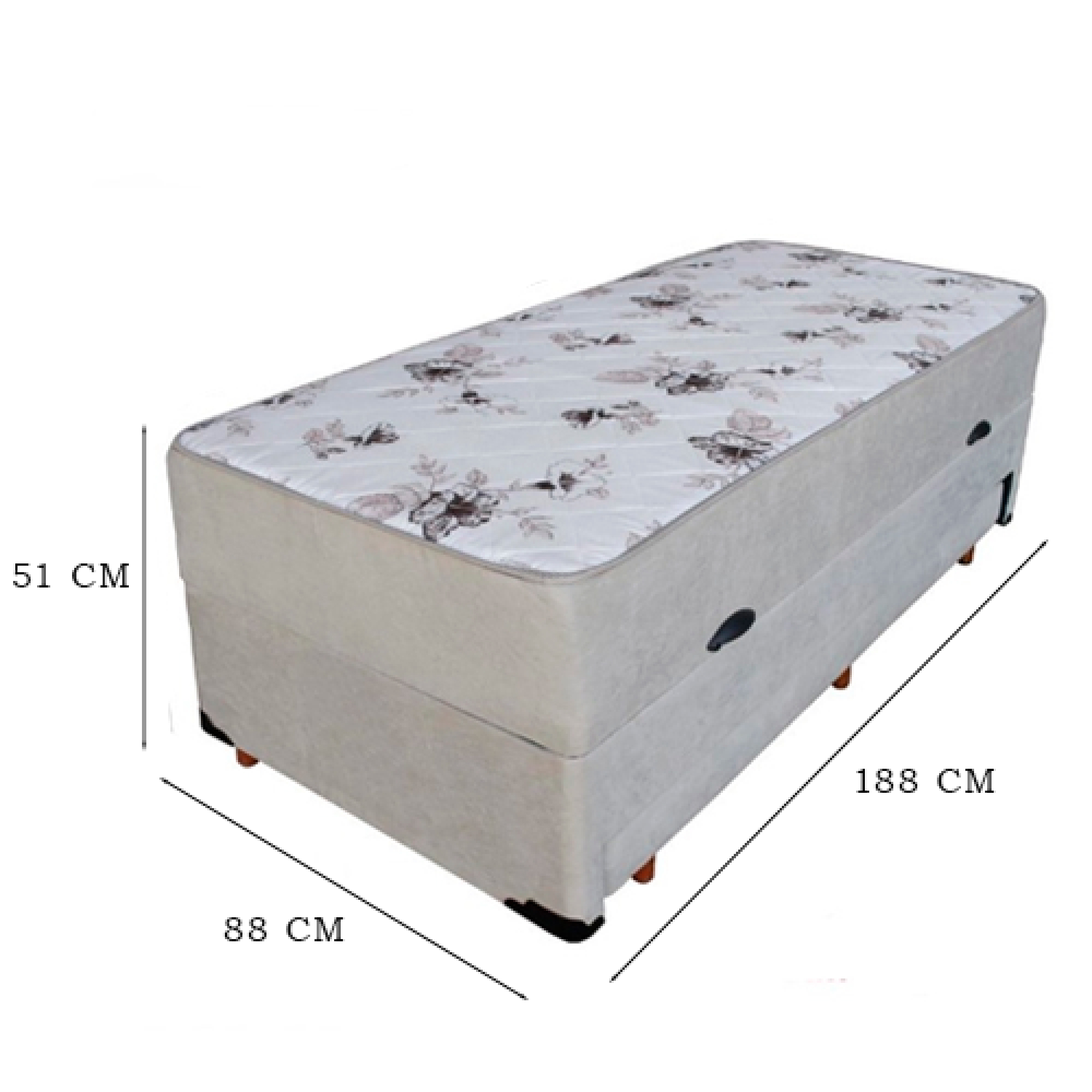 Um produto 3 em 1, assim é a Bibox . Um colchão confortável em espuma. Contam com tratamento antiácaro e antifungo. e suportam até 80 Kg por pessoa. O baú é ideal para armazenar cobertores, roupas de cama e o que você preferir. Para hospedar a família e amigos com conforto, conta com cama auxiliar em espuma, que é facilmente guardada no box para otimização de espaço em sua casa, sendo perfeita para cômodos compactos. Bibox ortopédica espuma, pés em PVC preto com 6cm de altura. Tampo Poliéster bordado, lateral em suede bege.