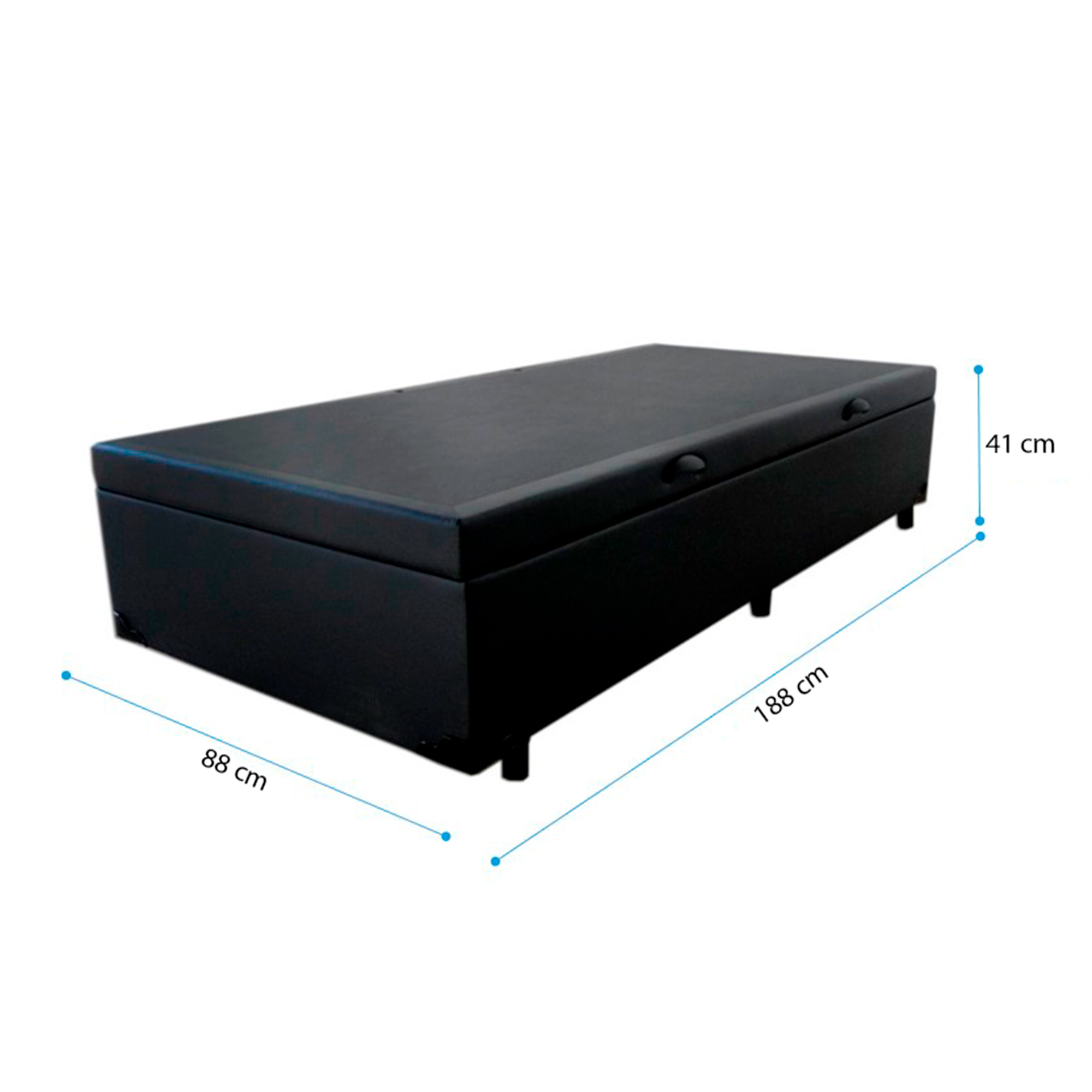 Cama Box Baú Solteiro 88 Tecido Sintético Preto Com Colchão de Espuma D33 Tokio Bege