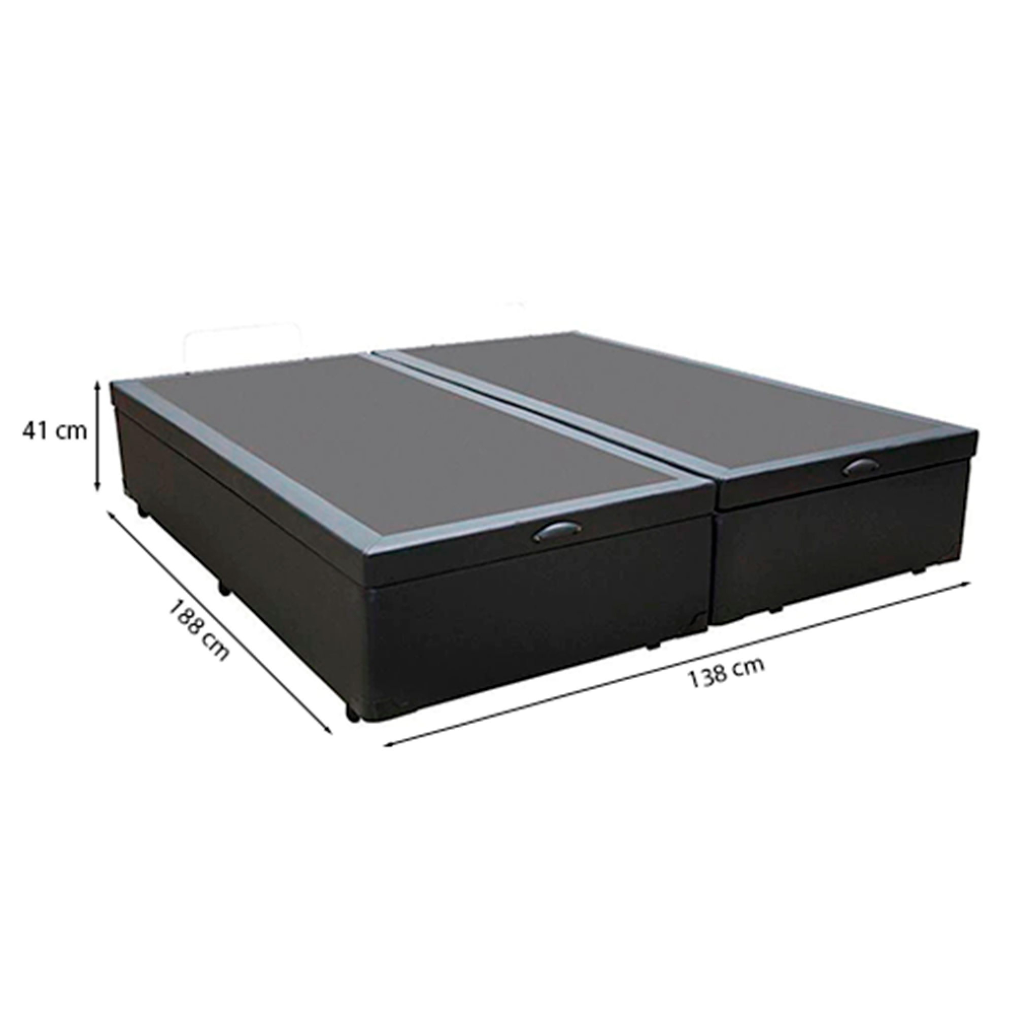 Cama Baú Casal 138 Bipartido Tecido Sintético Preto Com Colchão de Espuma Tokio D33 Bege - 65x138x188cm